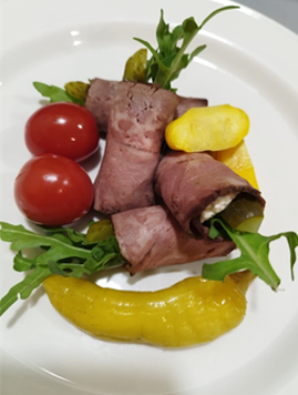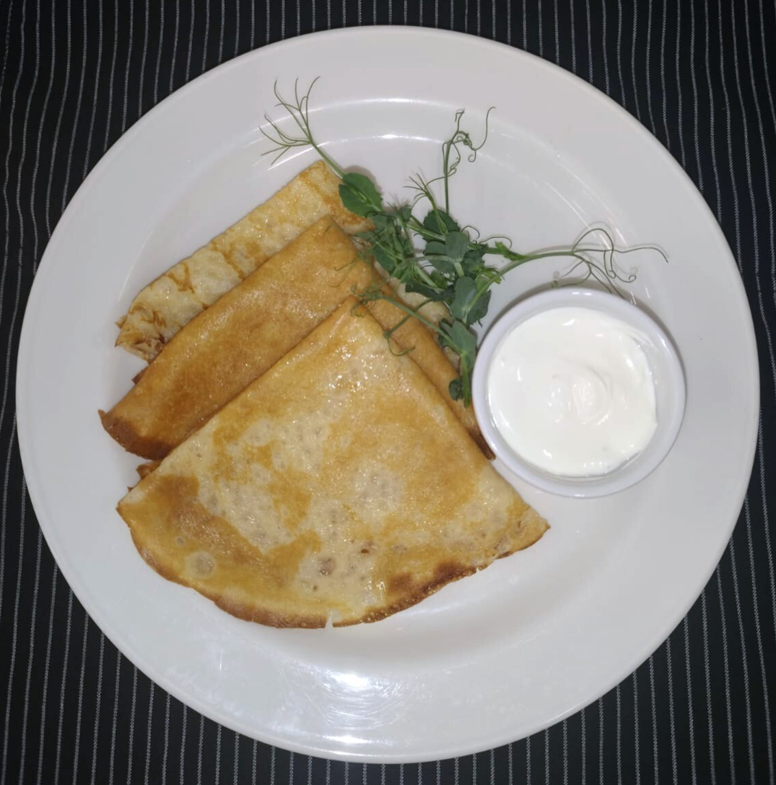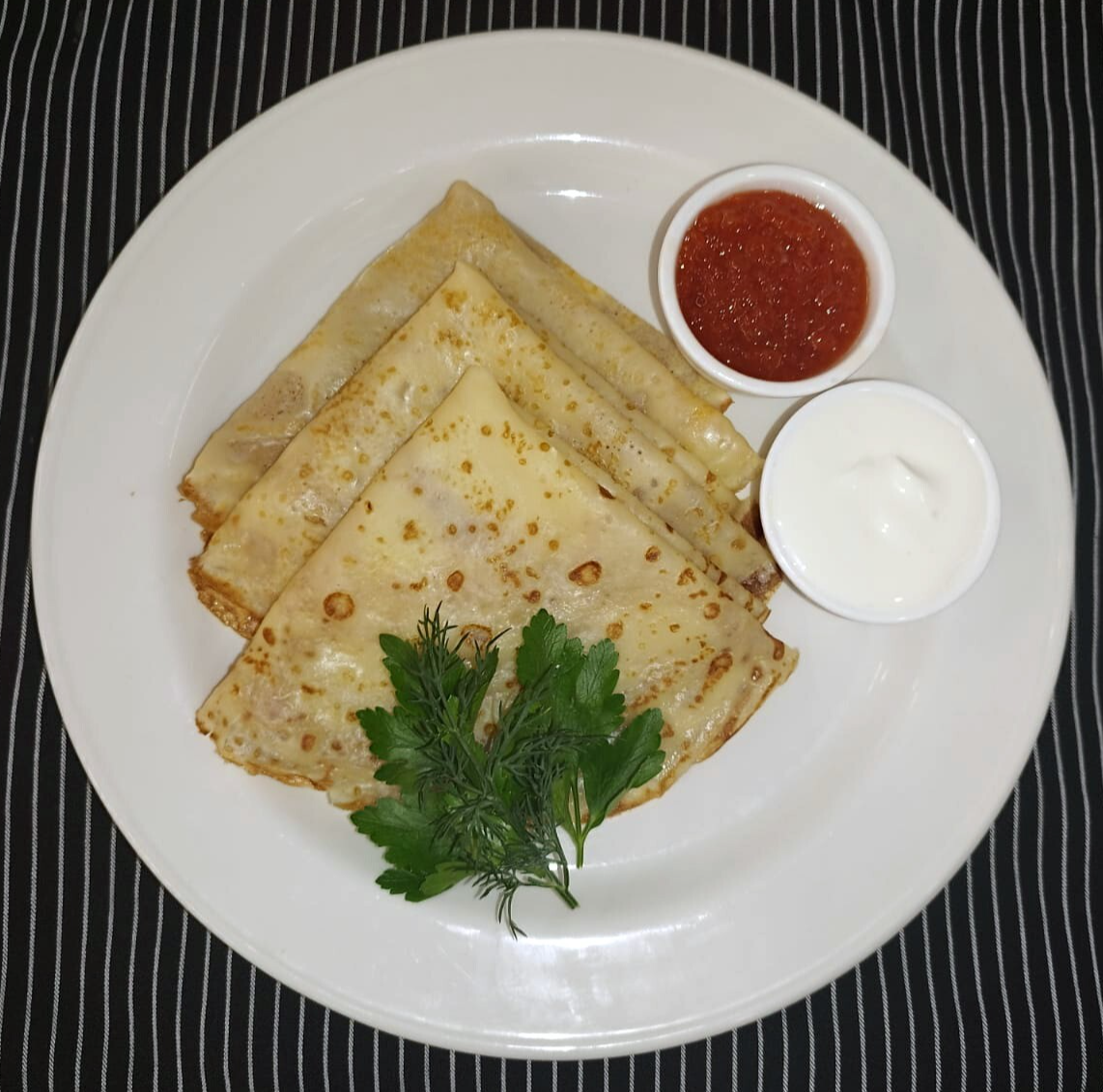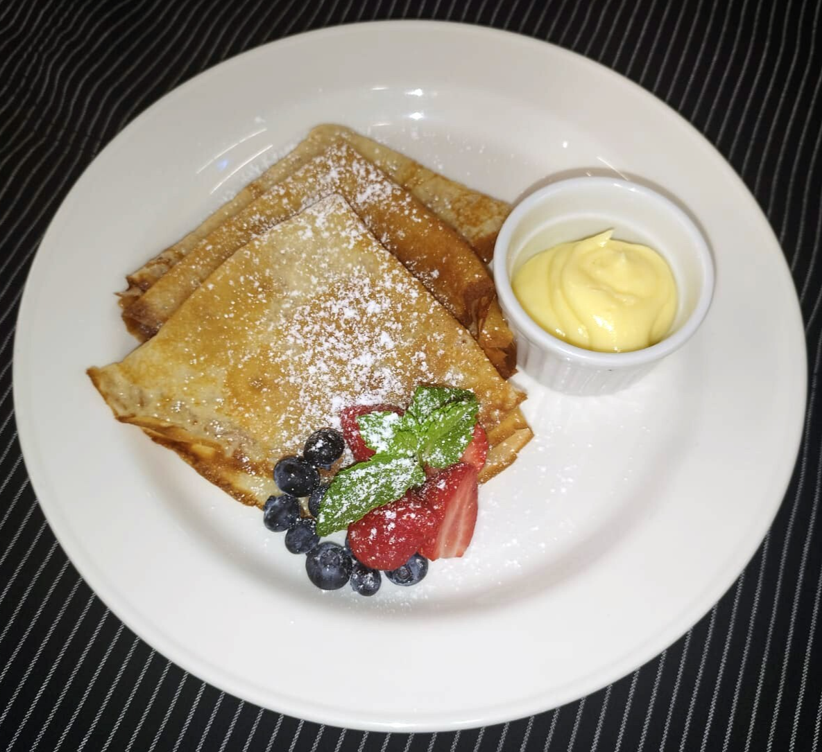 2 eggs cooked at your choice, bacon, sausages, fried potato, grilled tomato, mushrooms. Bakery basket of croissant, danish, two bread rolls.